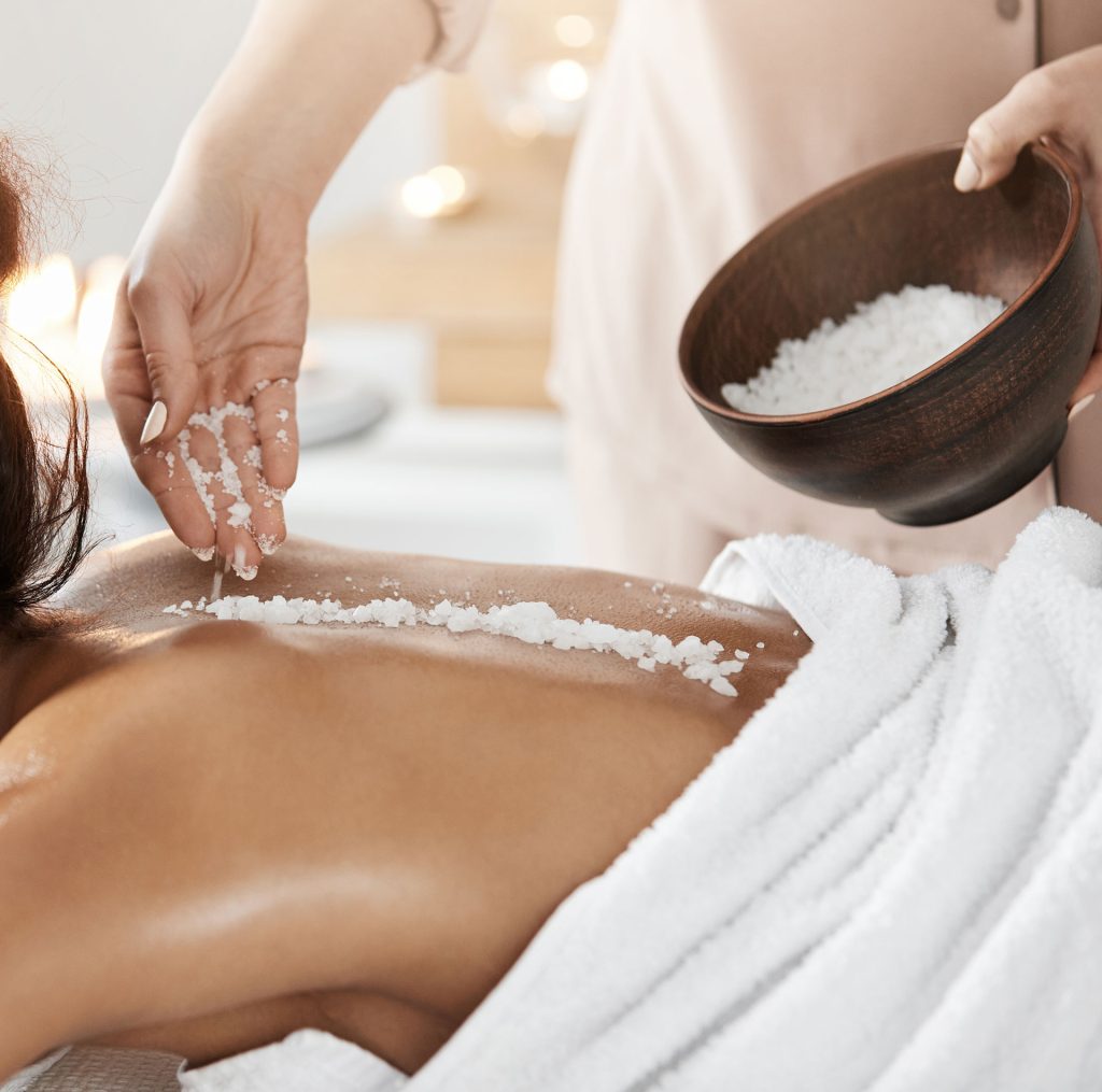 Elimina células muertas dejando la piel suave y renovada. Se complementa con envolturas de fango, algas o aceites esenciales para nutrir, purificar o tonificar según el objetivo del tratamiento.